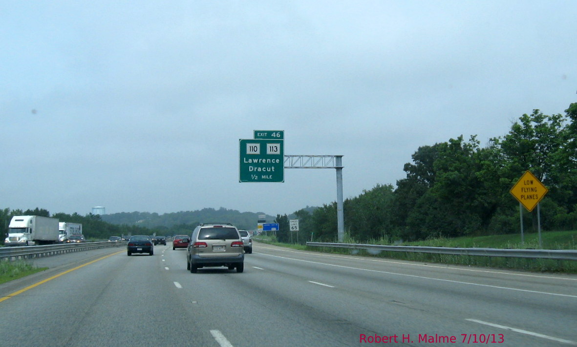 Apparently, based on the warning sign, this is near the Lawrence Airport. We are now approaching the last few exits in MA. Here is the first sign for the MA 213 exit: