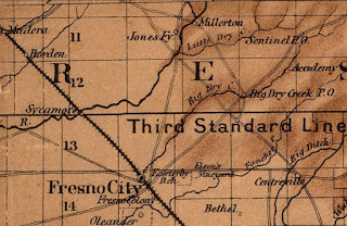 Hamptonville and the road to Fresno can be seen on the 1891Thompson Map of Fresno County.  Note: during 1891 the community of Hamptonville would be renamed to "Pollasky" after the community received railroad service.  Pollasky was a reference to Southern Pacific Railroad official Marcus Pollasky.