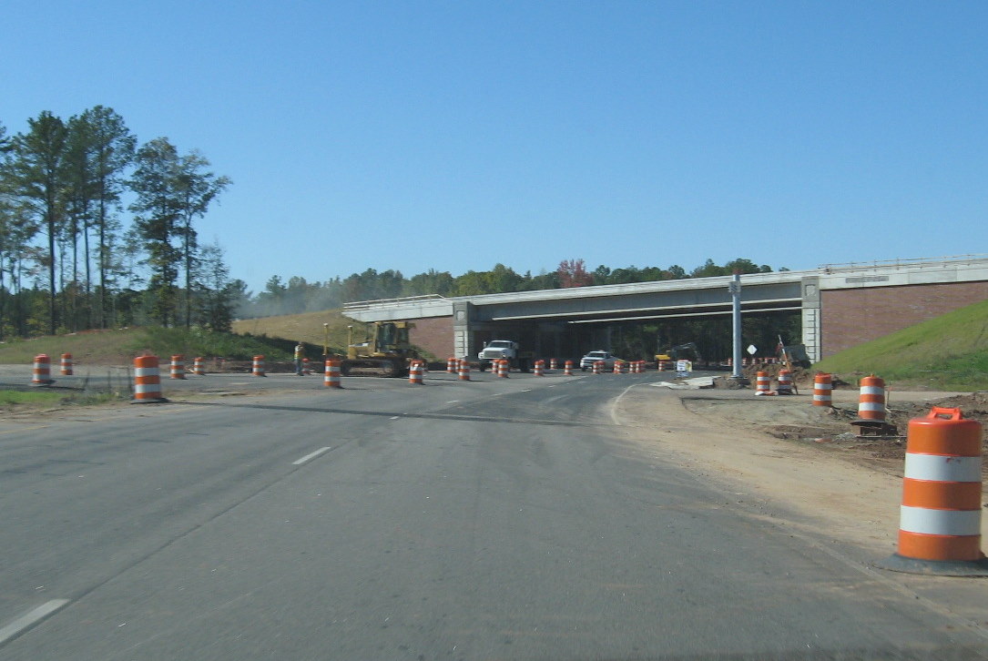 The concrete stopped along the roadbed between this future interchange and the Jenks Road bridge just north of US 64. This bridge had just been opened the week before. Unfortunately, this is the best view of the roadway construction I could get. This road connects Jenks to the Mall near the corner of NC 55 and US 64: