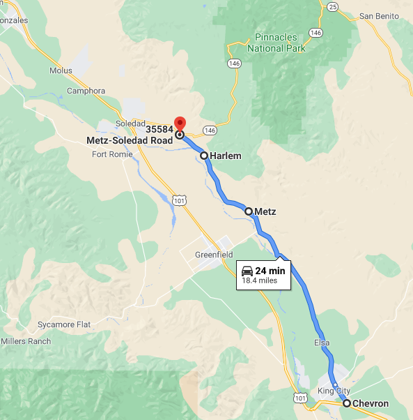 south from Salinas to King City likely would had utilized Metz Road. A