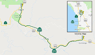 The southern segment of CA 271 begins at CA 1 in Leggett and ends at US 101 in Cummings. The southern segment if best depicted by California Highways CA 271 page: