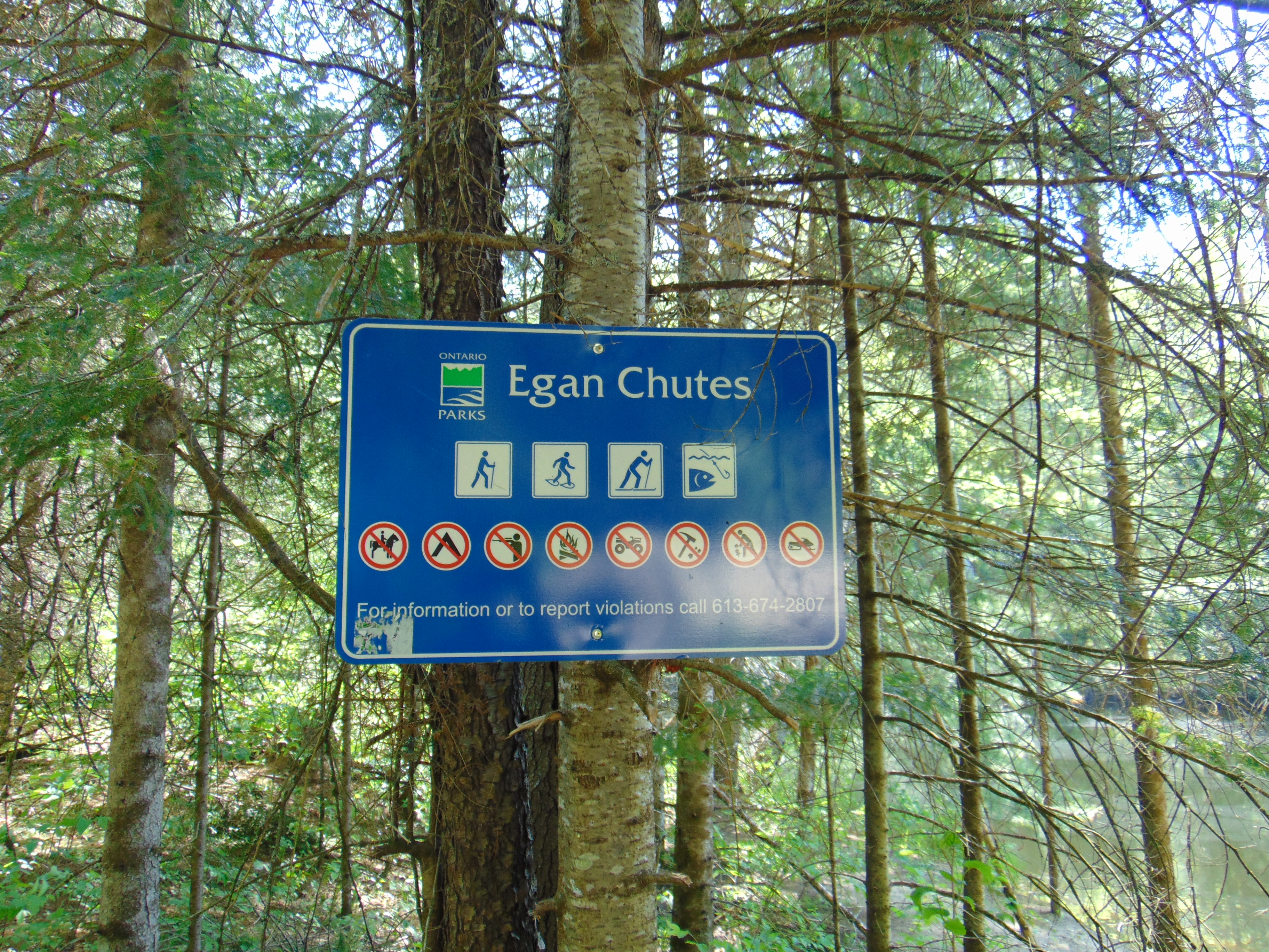 | Of course, I had to chase another waterfall. This time, it's Egan Chute at Egan Chutes Provincial Park, which is an undeveloped park reached by a nondescript road (which may have been an old highway alignment itself). |